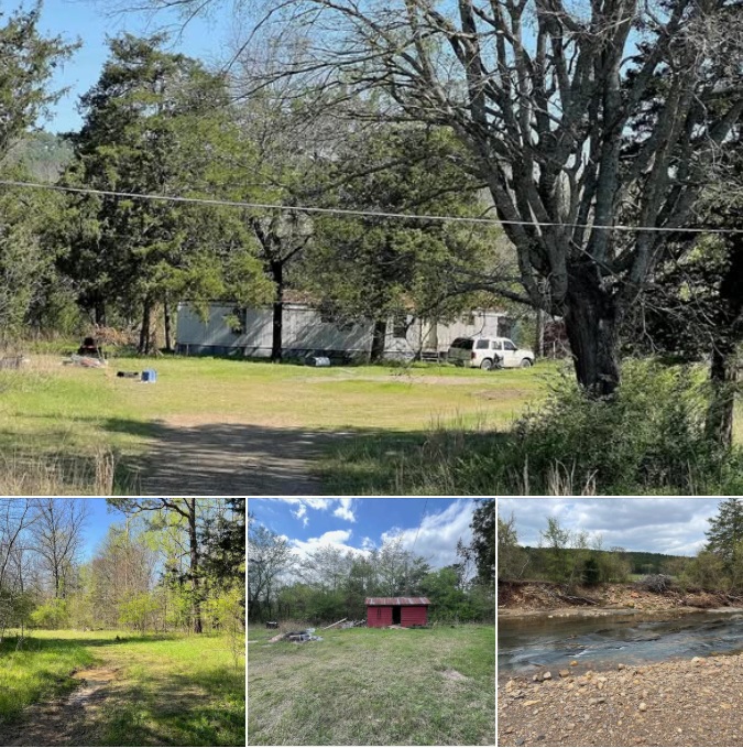 With 10.88 acres of land, a creek flowing through the property, a livable mobile home, and an additional cabin near an open field, this Boles property offers a unique opportunity to build a rural lifestyle surrounded by nature.