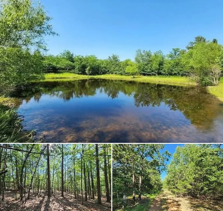 Land & Terrain: Mix of flat and gently sloping terrain with mature timber, a year-round pond, and a seasonal creek.