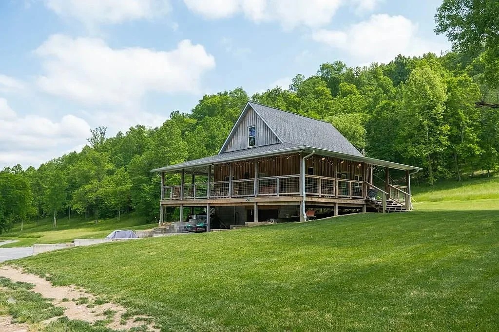 This property is located in Gainesboro, Tennessee, and includes a 2-bedroom, 2-bathroom home with approximately 1,434 square feet of living space. Built in 2019, the custom home sits on a private, unrestricted 115-acre lot comprising both pasture and wooded areas.