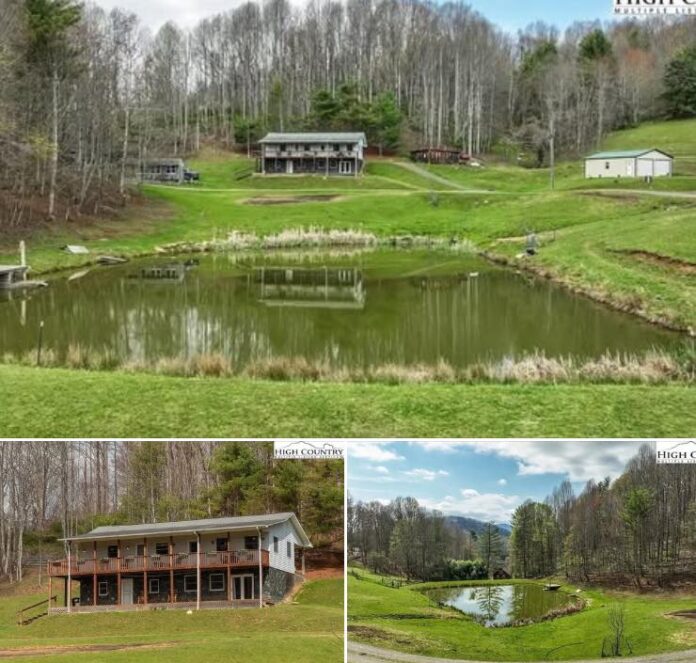 A 2-bedroom, 2-bathroom home located in Lansing, North Carolina is currently listed for sale. Built in 1992, the home offers approximately 1,805 square feet of living space and sits on a 26.24-acre lot featuring open pastureland, scenic mountain views, barns, natural springs, and a pond.