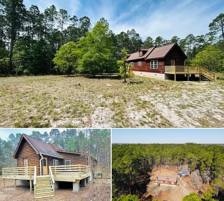 A 2-bedroom, 2-bathroom log cabin located in Garland, North Carolina, is situated on approximately 80.63 acres of private land. The home offers around 1,275 square feet of living space. Though the original construction year is unknown, the cabin is fully finished and move-in ready.
