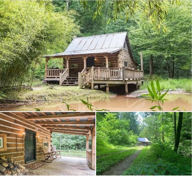 A gated entrance leads down a level, tree-lined road to the cabin, which sits beside a year-round, spring-fed pond. From the front porch, residents can enjoy the gentle sound of flowing water accompanied by birdsong, while deer, wild turkeys, and hummingbirds are frequently spotted throughout the property. The combination of open valley land, mature trees, and water features creates a peaceful, private setting that feels far removed from the hustle of daily life.