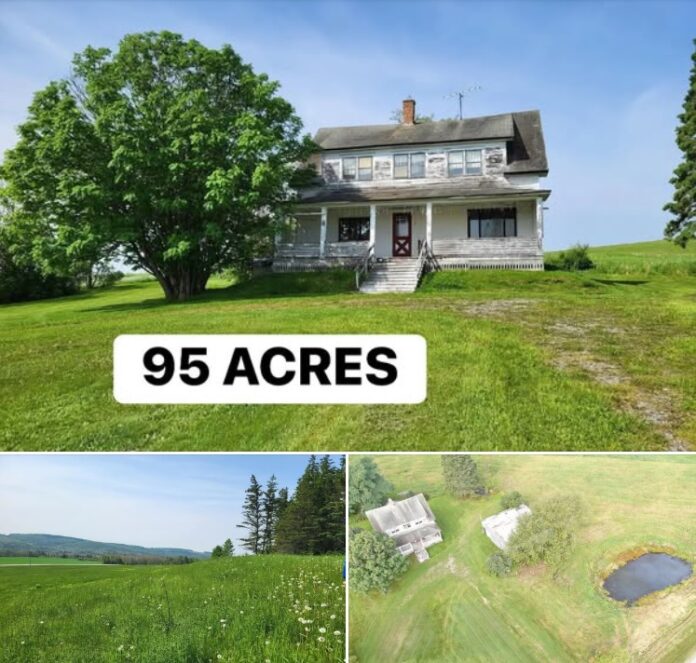 An old farmhouse remains on the property. The structure includes five bedrooms and two bathrooms, but it is currently not habitable and will require a complete renovation or removal. This gives buyers the freedom to design a new home that fits their vision, whether that means restoring the farmhouse to its former glory or starting fresh with a modern build.