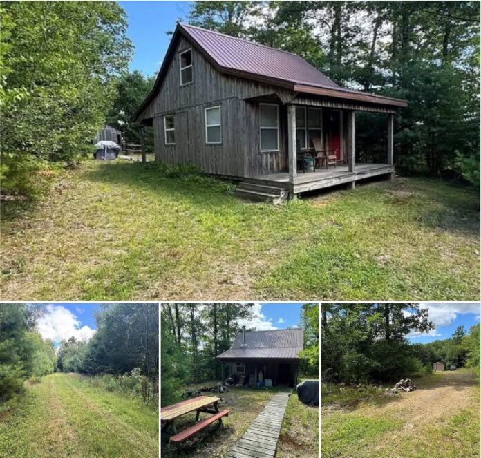The cozy 600-square-foot cabin includes one bedroom, oak hardwood flooring, and a loft area with carpeting, providing a warm and inviting interior. Built with comfort in mind, it features insulation, new windows that fill the space with natural light, and a metal roof that offers durability and low maintenance.