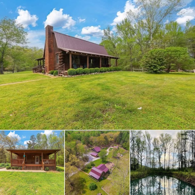 Amazing Log Cabin on 63+ Acres with Pond, Barns, and Guest Cabins for Sale in Huntingdon, Tennessee