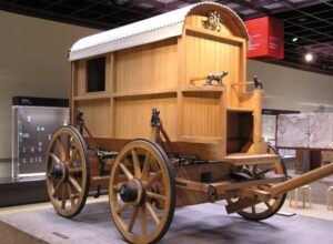 Rich Romans traveled in the carpentum which was the limousine of wealthy Romans. The carpentum was pulled by many horses, it had four wheels, a wooden arched rooftop, comfortable cushy seats, and even some form a suspension to make the ride more comfortable. Romans also had what would be the equivalent of our trucks today: the plaustrum. The plaustrum could carry heavy loads, it had a wooden board with four thick wheels and was drawn by two oxen. It was very slow and could travel only about 10-15 miles (approximately 15 to 25 km) per day.