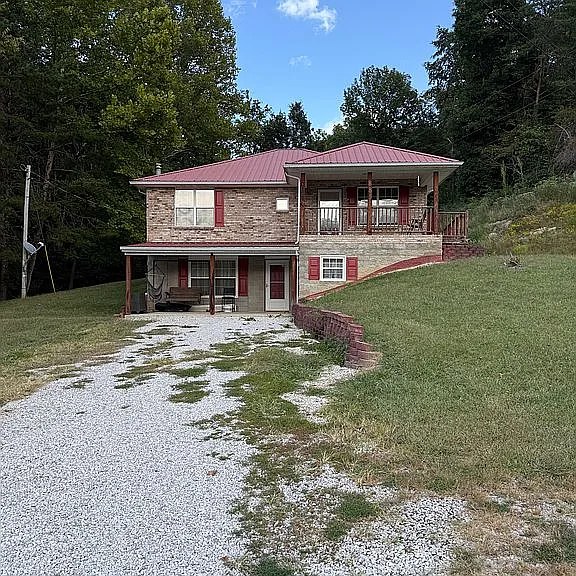 The owner appreciates the property’s private setting and its blend of rustic charm with modern practicality. The red brick exterior, metal roof, and spacious porch make the home both attractive and low-maintenance. Multiple outdoor spaces—including the front porch and the upper-level balcony—provide beautiful views of the surrounding trees. The long gravel driveway and multiple parking areas make it easy to host friends and family, while the wood-burning stove and full basement create warmth and additional space for hobbies or storage.