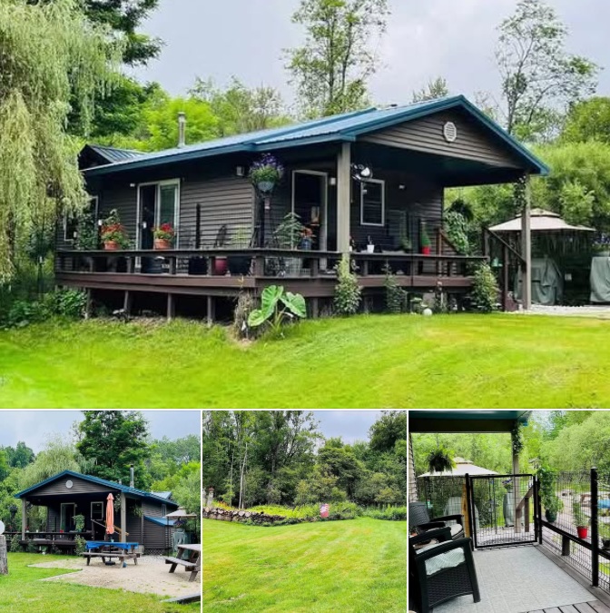 Located in Leroy, Michigan, this cabin provides seclusion and tranquility while still being within reach of nearby towns, shops, and services. It’s the kind of place where you can spend weekends fishing by the river, evenings around a campfire, and mornings waking up to the sounds of birds and flowing water.