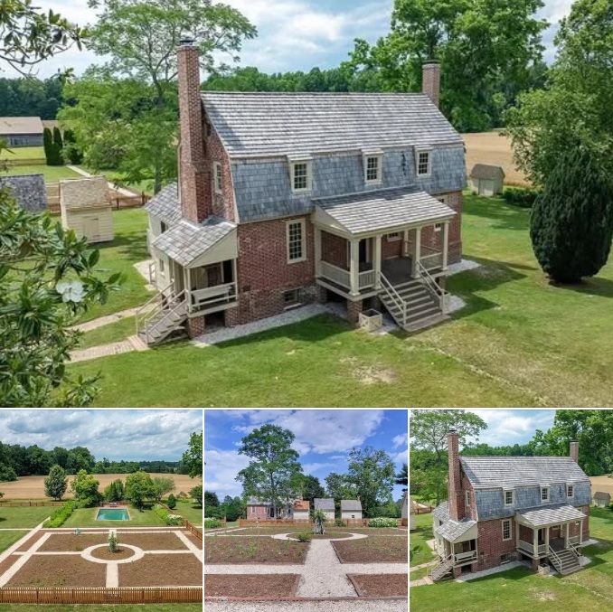 Located near Tappahannock in Virginia, the historic estate known as Cherry Walk dates to 1781 and encompasses 95.09 acres of open farmland, hardwood groves, pine stands, and water features. The four-bedroom, four-bathroom Tidewater Cape offers approximately 3,584 square feet of living space, blending preserved 18th-century craftsmanship with carefully integrated modern improvements.