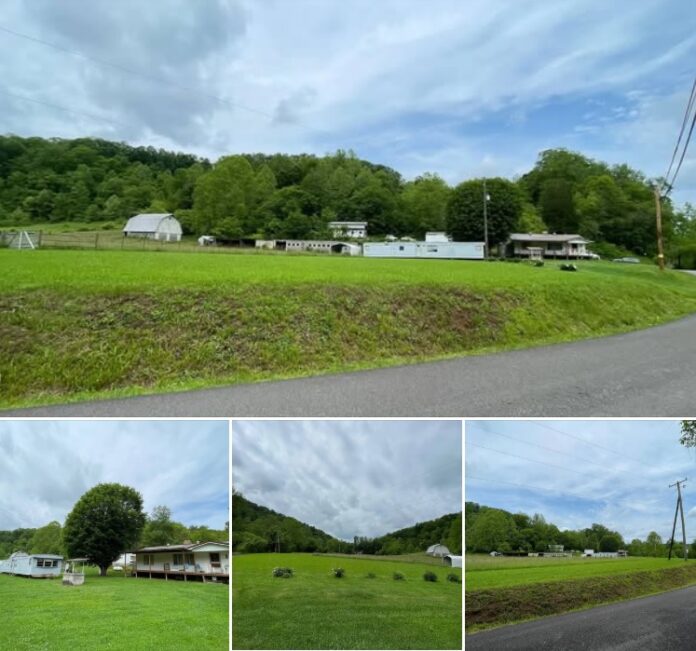 This one-story farmhouse in Charleston, West Virginia offers 2 bedrooms and 2 bathrooms across approximately 800 square feet. Built in 1920, the home sits on a 43-acre lot featuring a mix of pasture, hay fields, and wooded areas.