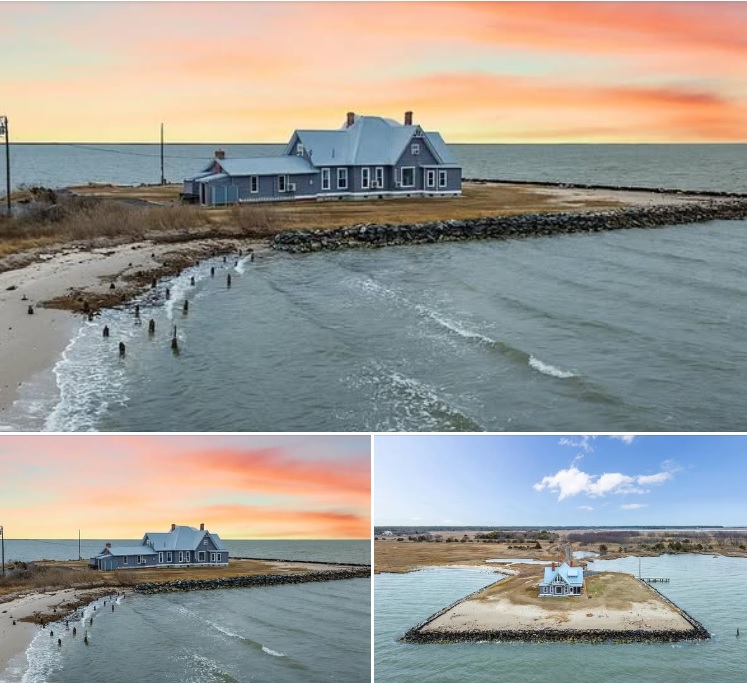 The main home offers about 2,921 square feet of interior space and features five bedrooms and two bathrooms. With its classic design and historic roots, the house retains much of its original character while benefiting from thoughtful updates that make daily living comfortable and practical. Large windows throughout the home allow natural light to flow into the interior while also highlighting the surrounding views of water, trees, and open sky.
