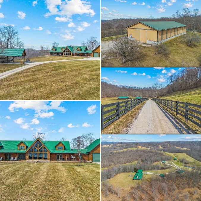 This expansive log home rises at the center of a working cattle farm in Grayson, Kentucky. The property spans 321.5 acres and supports a full agricultural lifestyle. Moreover, the gated entrance creates privacy while maintaining efficient daily access. The land includes rolling pastures, fenced sections, and established water systems. As a result, owners manage livestock operations with clarity and control. Meanwhile, the scale of the acreage encourages long term planning and generational use. This setting supports daily farm routines without sacrificing residential comfort.