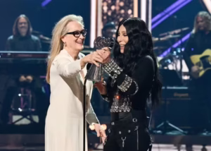 Beyond her fashion moment, Meryl delivered a heartfelt tribute to her dear friend, Cher, presenting her with the prestigious Icon Award. Praising Cher’s indomitable spirit and tireless activism, Streep reflected on their decades-long friendship built on mutual respect and a shared commitment to social change. “Cher leads with her heart,” Meryl declared, her sincerity shining through.