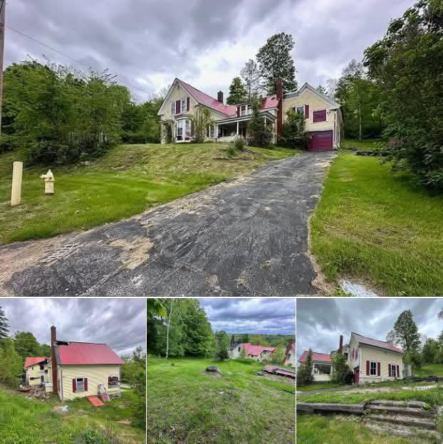 This three-bedroom, two-bath home requires repairs to become livable again. Situated on High Street, the property offers nearly 5 acres of scenic land with gently sloping terrain, providing privacy while still being in town.