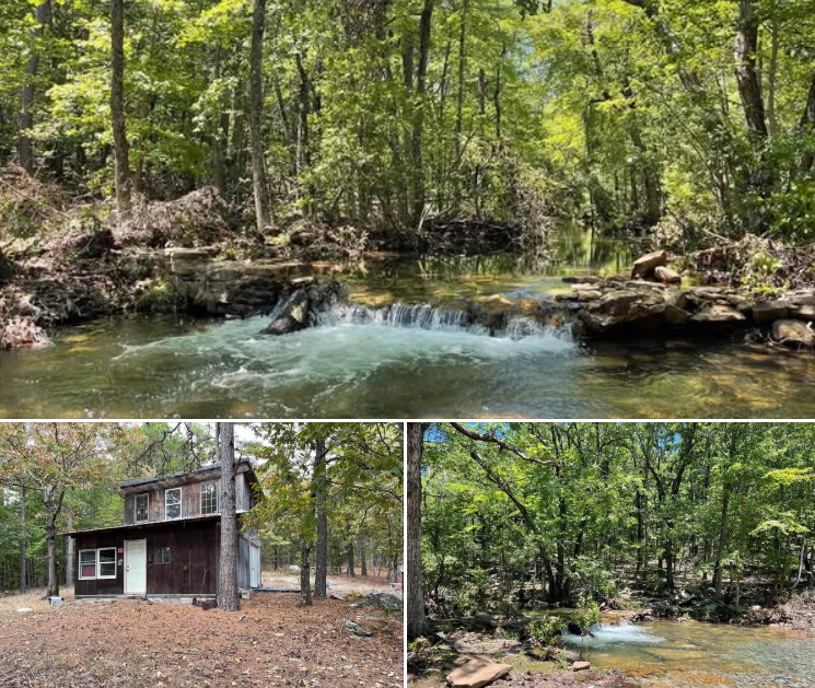 Located in Clayton, Oklahoma, this 40.08-acre property sits atop Bow Mountain and offers off-grid living in a quiet, remote setting. The 400-square-foot cabin, built in 2005, features a loft sleeping area, kitchen space, and a cement foundation. Specific bedroom and bathroom counts are not listed.