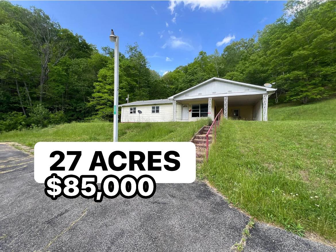 This listing includes 27.4 acres of land in a rural setting near Duck, West Virginia. Specific details about bedrooms, bathrooms, square footage, or the year the home was built are not provided. The existing home structure has been fully gutted and is available for renovation or removal.