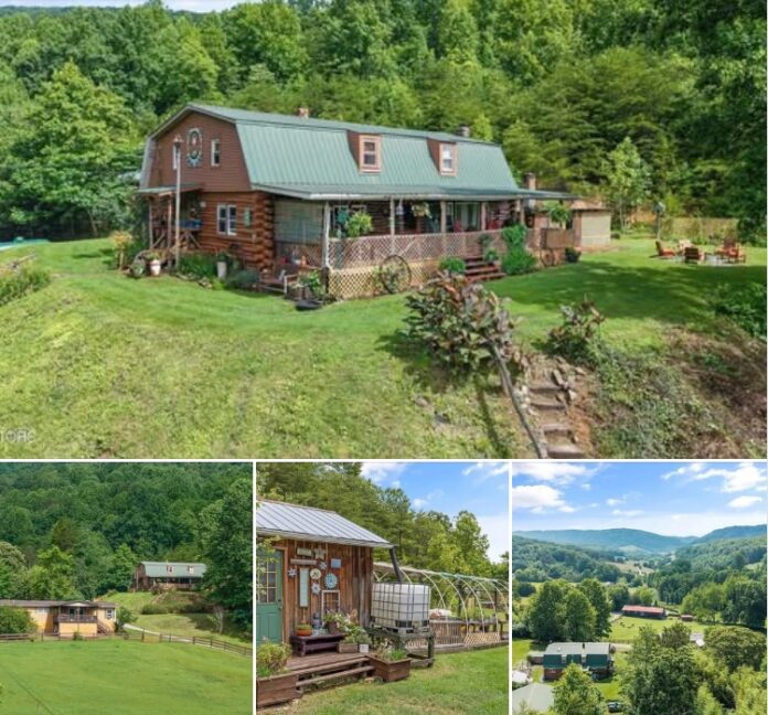 Located in the quiet Mulberry Gap area of Hancock County, this 119.23-acre farm offers a rare combination of handcrafted architecture, open pastures, wooded hillsides, and a second residence for added flexibility. Built in 1992, the main log home features two bedrooms, two bathrooms, and roughly 2,400 square feet of living space, surrounded by sweeping views of farmland and mountain ridges.