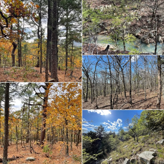 This 40-acre property near Clayton, Oklahoma offers space, elevation, and constant visual interest. Clear Creek cuts through the land with flowing water, rock shelves, and small waterfalls. Because elevation ranges from valley floor to mountain top, the land supports varied use. Tall oak, pine, and cedar trees shape the landscape throughout. Large boulders add character and structure to the terrain. Buyers who value privacy, views, and natural features will recognize strong long-term potential here.