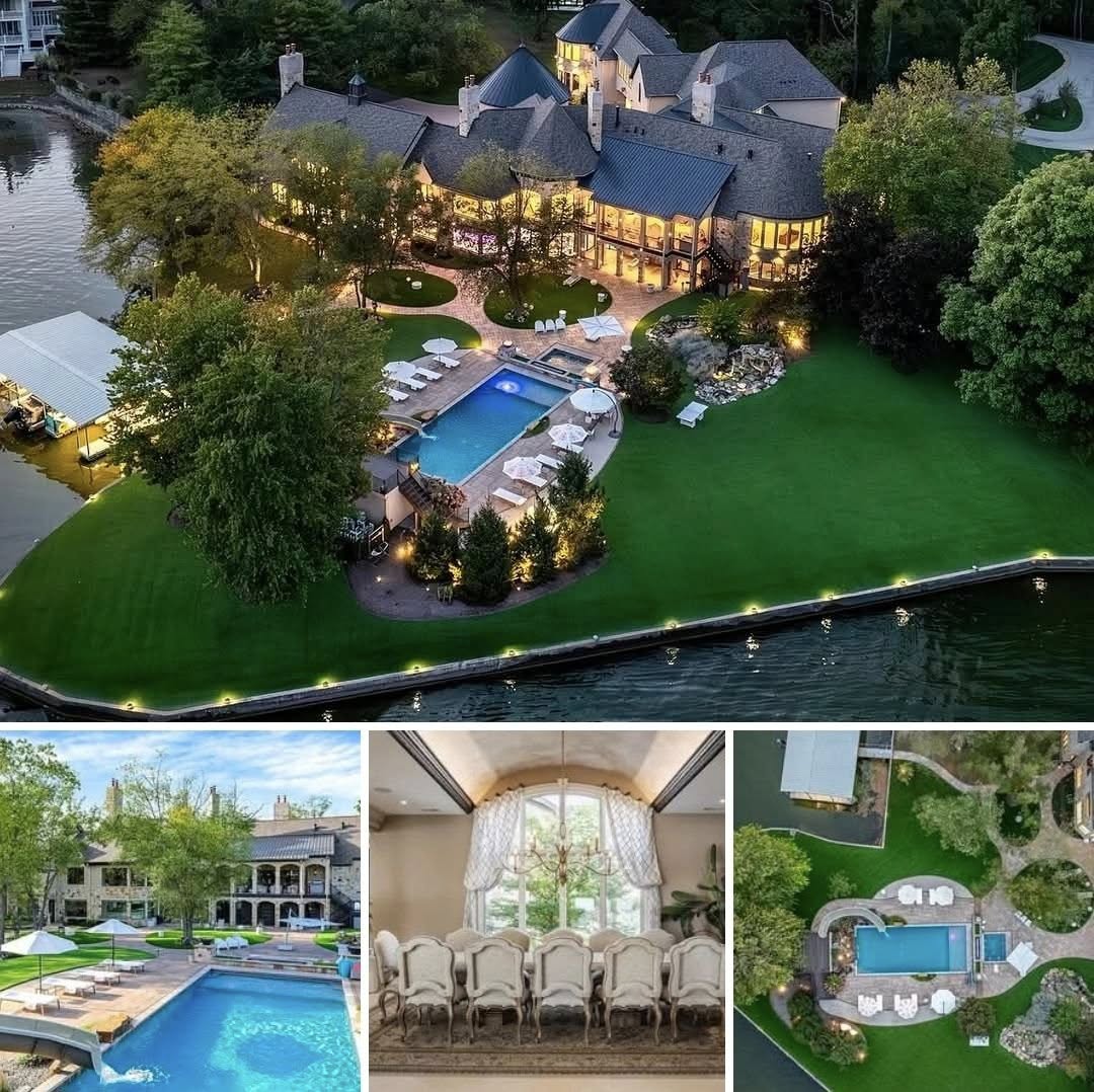 From the moment you enter the grounds, the estate sets an unmistakable tone. A gaslit, tree-lined drive curves gently through manicured lawns and natural woodland areas, revealing a breathtaking architectural presence known as The Andretti Estate. With 9 bedrooms, 12 bathrooms, 7 fireplaces, and a remarkable range of indoor and outdoor amenities, this home captures the essence of luxury lakeside living.