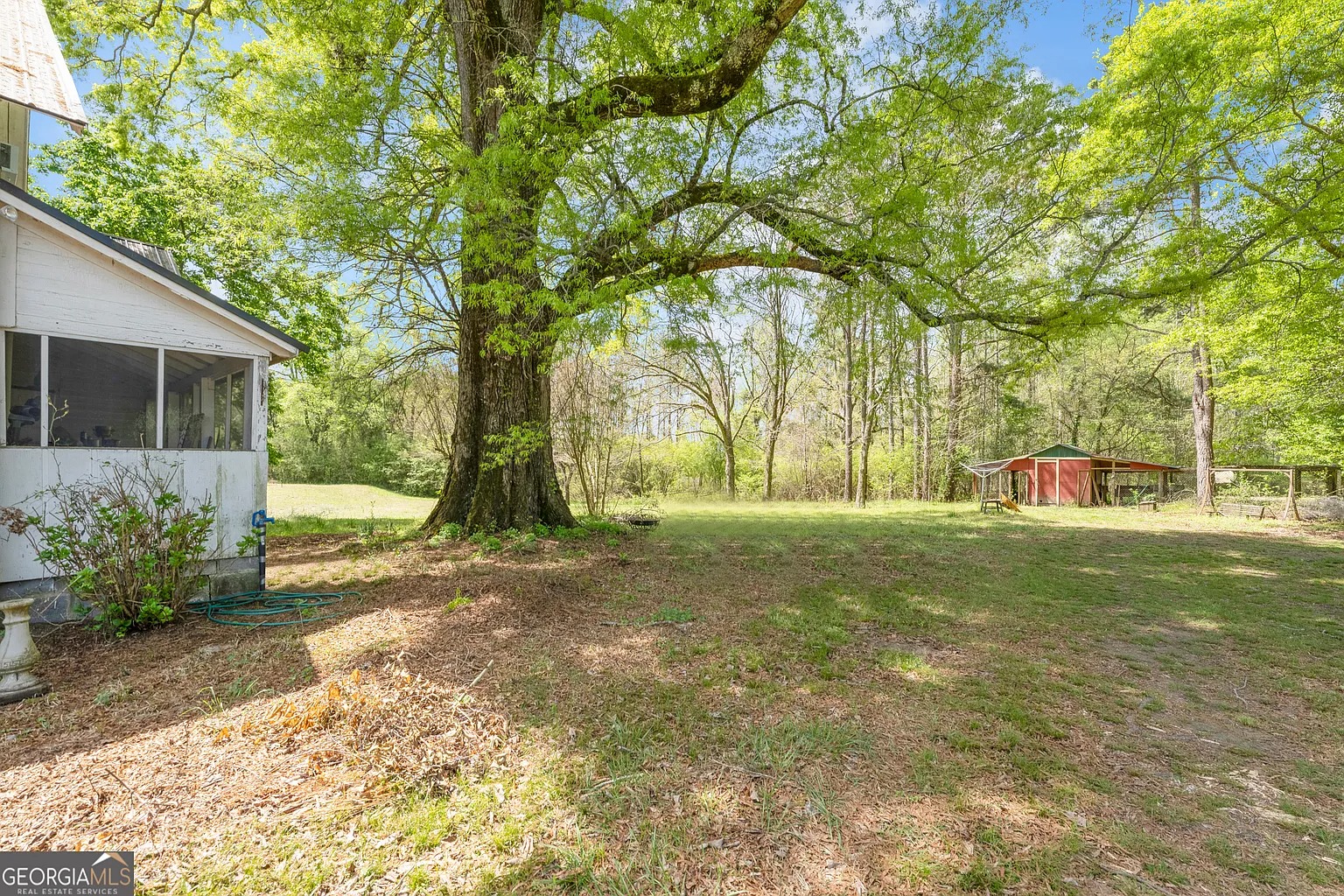 The nine-acre lot supports both open ground and established growth. Fruit trees include peach, pear, pecan, and walnut, which add seasonal interest and future harvests. Because the acreage stretches beyond the home, owners can add gardens, fencing, or recreational areas. Meanwhile, the land encourages quiet outdoor living without isolation. Space around the home also allows future expansion. As a result, the property fits long-term plans that extend beyond the main house.