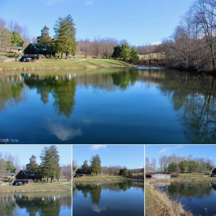 This 43.73-acre property in Dresden, Ohio, presents a versatile opportunity for residential living, farming, or recreation. A 1.5-story, 1,900-square-foot home overlooks a scenic pond and includes a full basement for added space and storage.